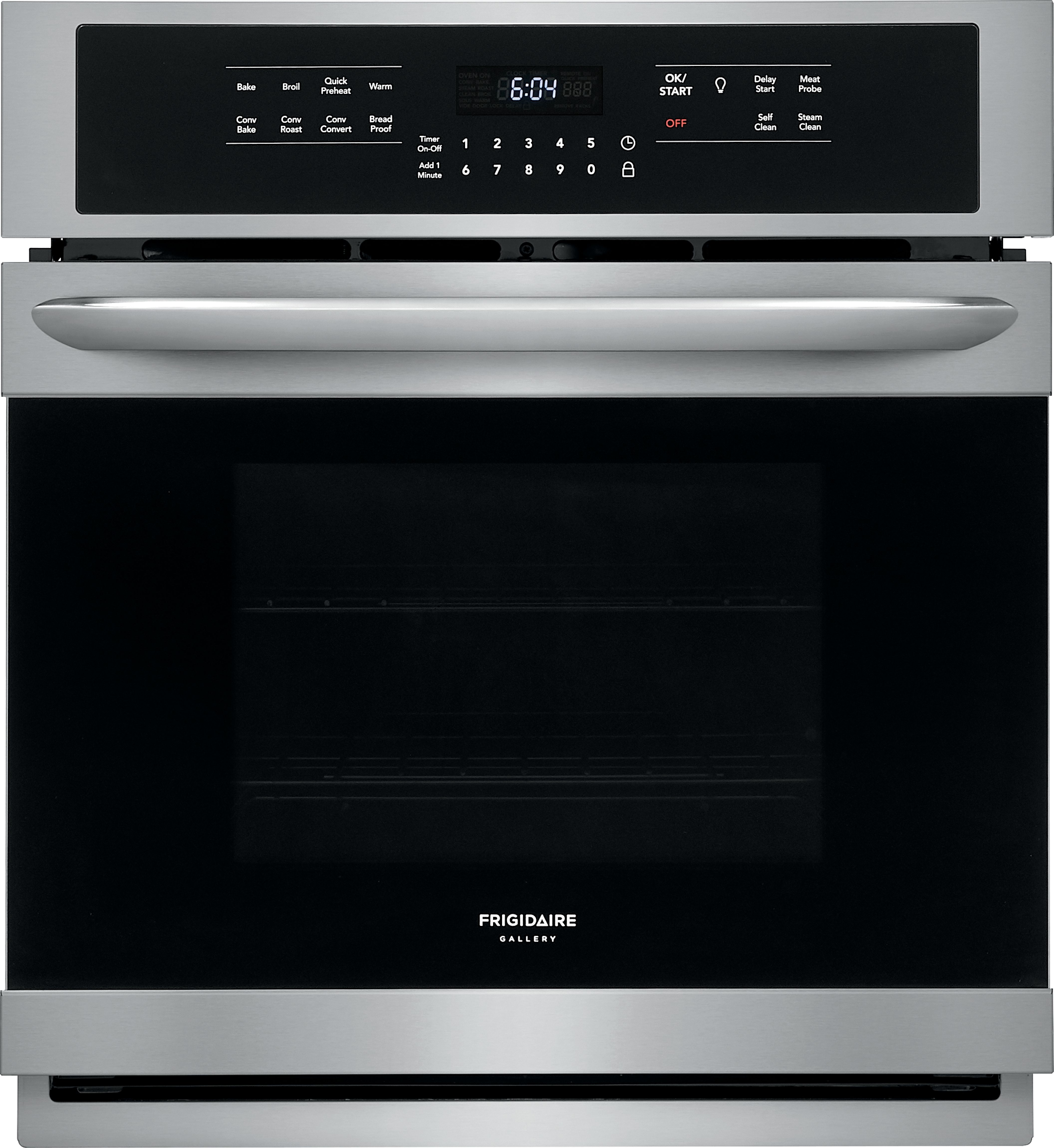 The Frigidaire Gallery 27 in. Electric Wall Oven features a large 3.8 cu. ft. oven so you have more room to cook multiple items. Express-Select Control panel makes it easy to set cooking temperature or choose one-touch cooking options for baking and cooking at the touch of a button. With True Convection, the convection fan distributes heat throughout the oven for faster and more even multi-rack baking. Both ovens also include quick preheat, pizza button, and keep warm setting for all your cooking and baking needs.Read More