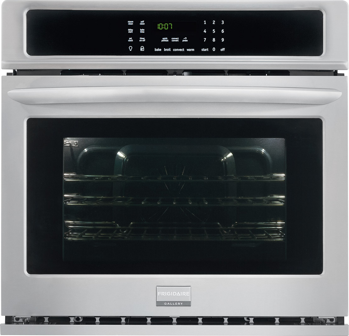 The Frigidaire Gallery 27 in. Electric Wall Oven features a large 3.8 cu. ft. oven so you have more room to cook multiple items. Express-Select Control panel makes it easy to set cooking temperature or choose one-touch cooking options for baking and cooking at the touch of a button. With True Convection, the convection fan distributes heat throughout the oven for faster and more even multi-rack baking. Both ovens also include quick preheat, pizza button, and keep warm setting for all your cooking and baking needs.Read More