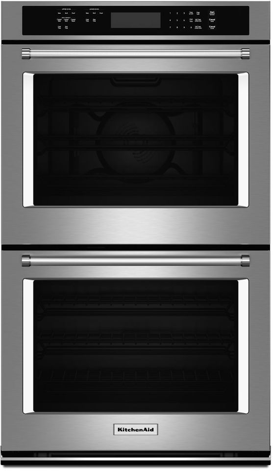 This 27" Double Upper Wall Oven with Even-Heat™ True Convection provides consistent heating and even cooking. A unique bow-tie shaped design and convection fan helps ensure there are no burnt edges or undercooked centers. The Temperature Probe delivers accurate measurement of internal temperatures of meats, poultry, and casseroles without opening the oven. Bold design details are the perfect balance of elegance and functionality.Read More