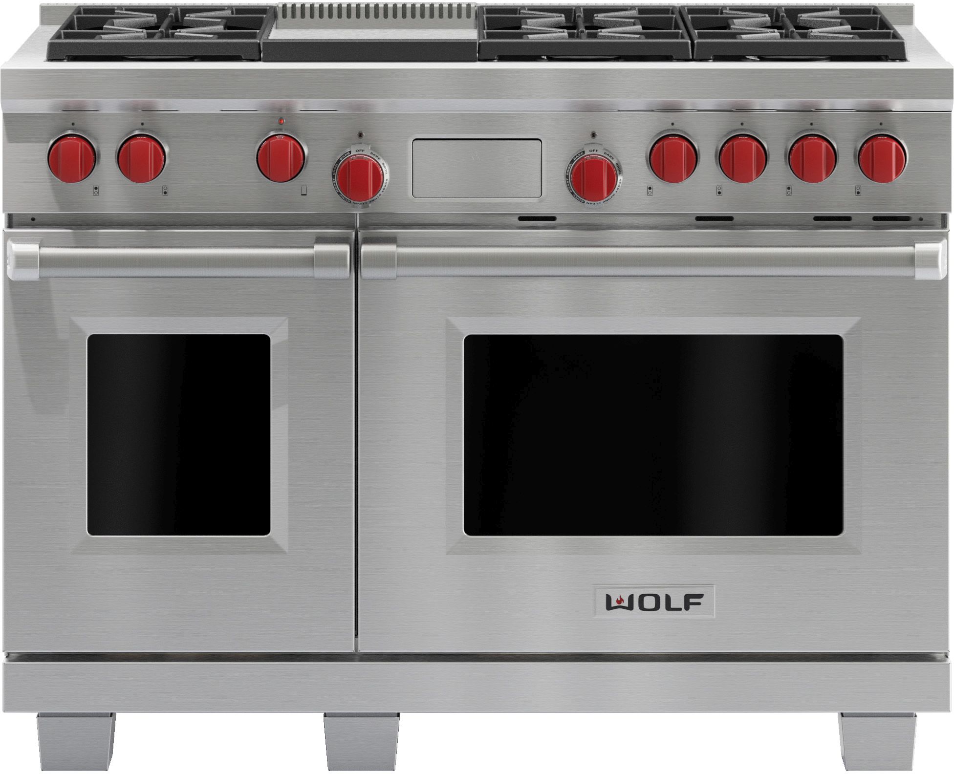 Wolf® 48" Pro Style Dual Fuel Range-Stainless Steel with 7.0 cu. ft. total capacity, 6 dual stacked sealed burners and griddleRead More